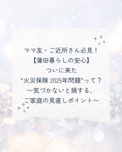 💬 ママ友・ご近所さん必見! 【蒲田暮らしの安心】ついに来た“火災保険 2025年問題”って? 〜気づかないと損する、ご家庭の見直しポイント〜